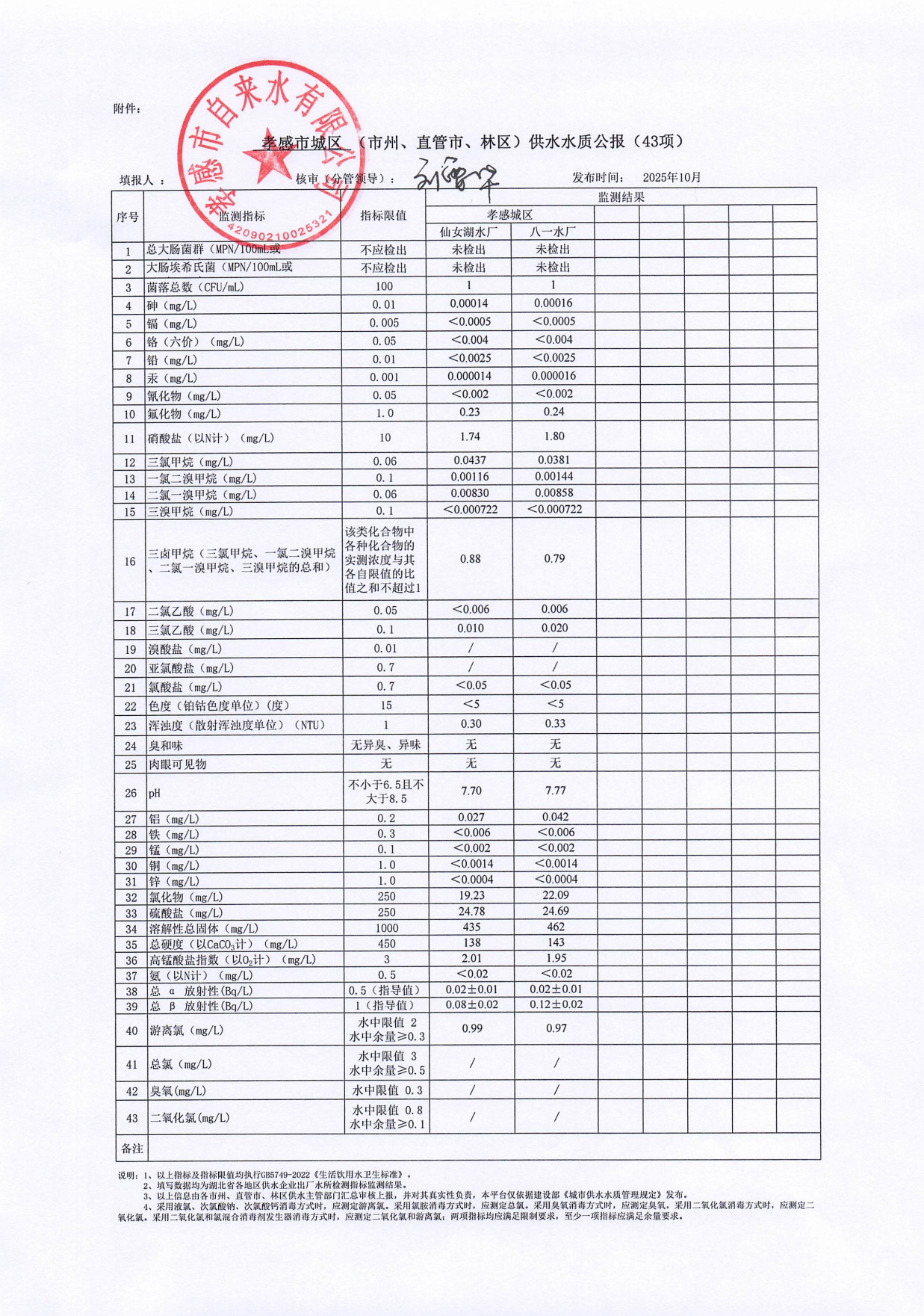 2025年10月水質(zhì)報告