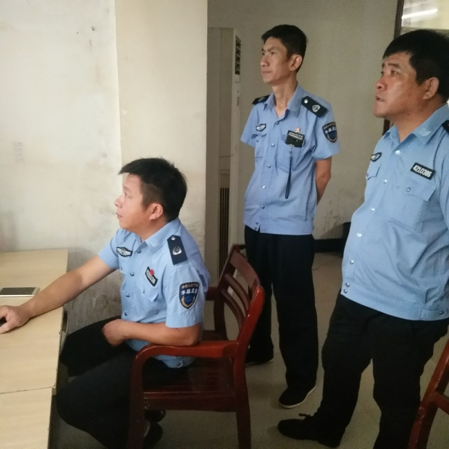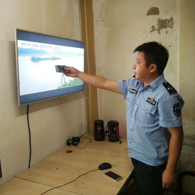 監(jiān)察大隊(duì)在取水泵站查看監(jiān)控視頻