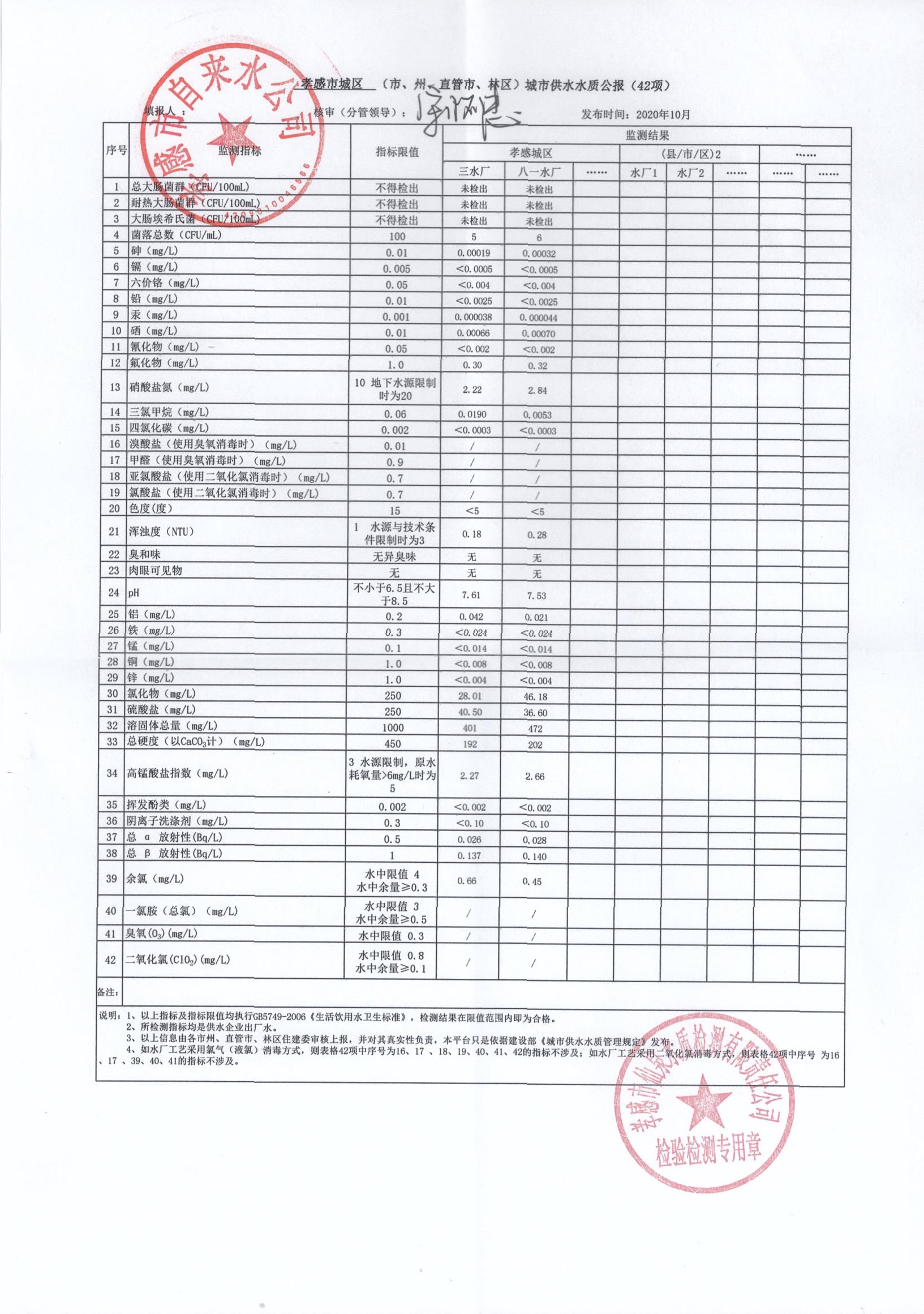 2020年10月水質(zhì)報(bào)告