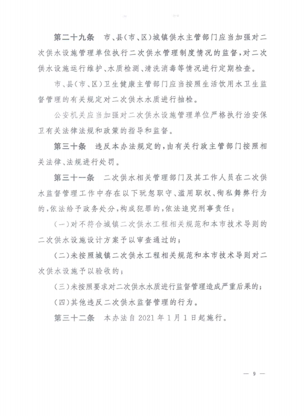 孝感市城鎮(zhèn)居民住宅二次供水管理辦法